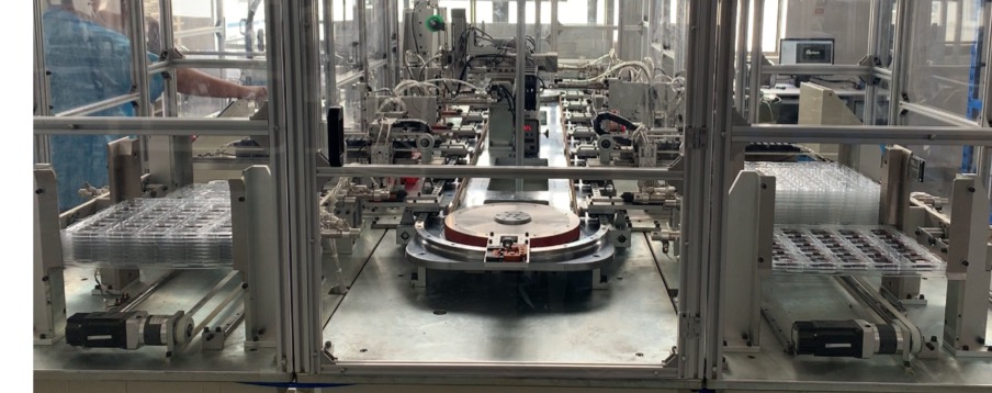 用于醫(yī)療血氧儀全自動(dòng)生產(chǎn)線(xiàn),包含自動(dòng)上料,焊錫,自動(dòng)燒錄程序,視覺(jué)檢測(cè)等。
