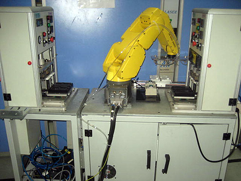 Fanuc六軸機(jī)器人配合熱熔機(jī)實(shí)現(xiàn)無(wú)人化作業(yè),包含兩制程的熱熔,一個(gè)單元全自動(dòng)完成,穩(wěn)定節(jié)省人力。